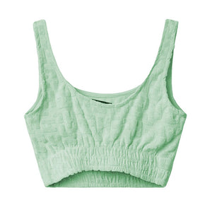 Make a statement with the ‘Hinnominate’ terrycloth crop top. Exuding effortless style in a stunning Maldives green, this trendy piece is adorned with a teddy embossed monogram that’s sure to turn heads. Crafted from a blend that promises both comfort and durability, this top epitomizes contemporary fashion. Showcase your bold sense of style and embrace the upscale casual look.