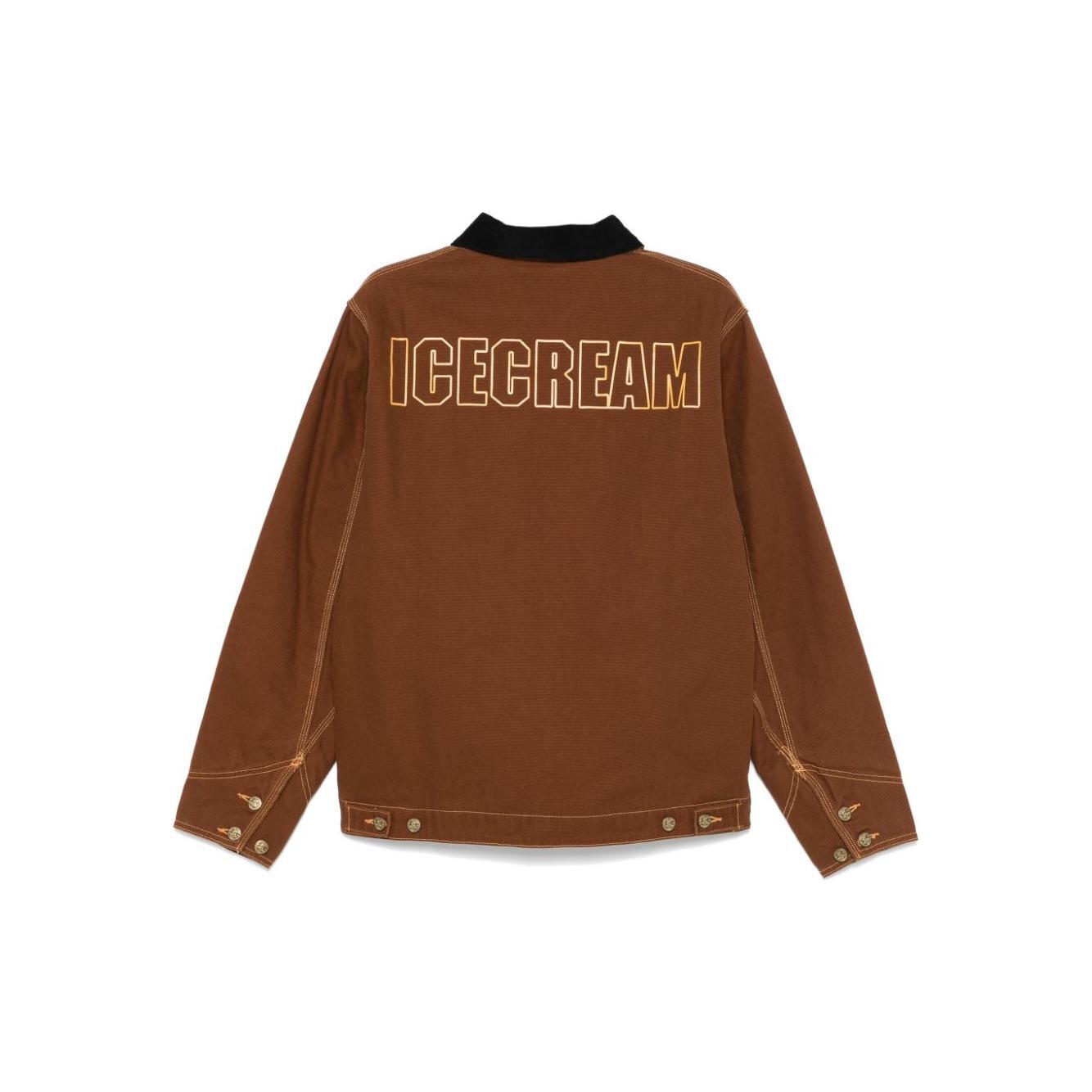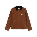 brown cotton canvas front two-way zip fastening corduroy collar long sleeves contrast stitching long sleeves buttoned cuffs zip-fastening chest pocket logo patch at the chest two side jetted pockets logo print to the rear straight hem Canvas workwear jacket Size and Fit - This piece fits true to size. We recommend you get your regular size. Model is 1,84m / 6ft 1in wearing size M