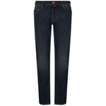 Experience the apex of denim craftsmanship with Jacob Cohen’s Bard slim fit jeans. These Italian-made masterpieces flaunt a suave dark blue hue complemented by contrasting orange stitching for a dash of flair. Designed for the modern connoisseur, they feature a luxe brown hammered leather patch that exemplifies the brand’s dedication to detail. Perfectly marrying comfort with style, these jeans are a must-have for those who demand excellence in their wardrobe.