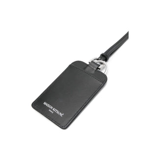 black calf leather smooth grain detachable neck strap card slots Fox Head plaque to the front logo stamp to the rear silver-tone hardware Fox Head leather neck cardholder Size and Fit - Width 2,56 in / 6,5 cm