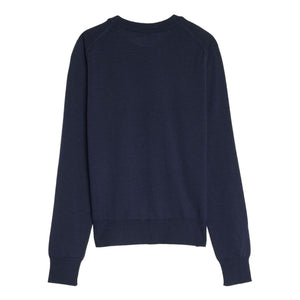 navy blue merino wool knitted construction ribbed-knit edge mélange effect signature fox motif logo patch at the chest crew neck long sleeves ribbed cuffs and hem straight hem Baby Fox wool jumper Size and Fit - This piece fits true to size. We recommend you get your regular size. Model is 1,75m / 5ft 8in wearing size S