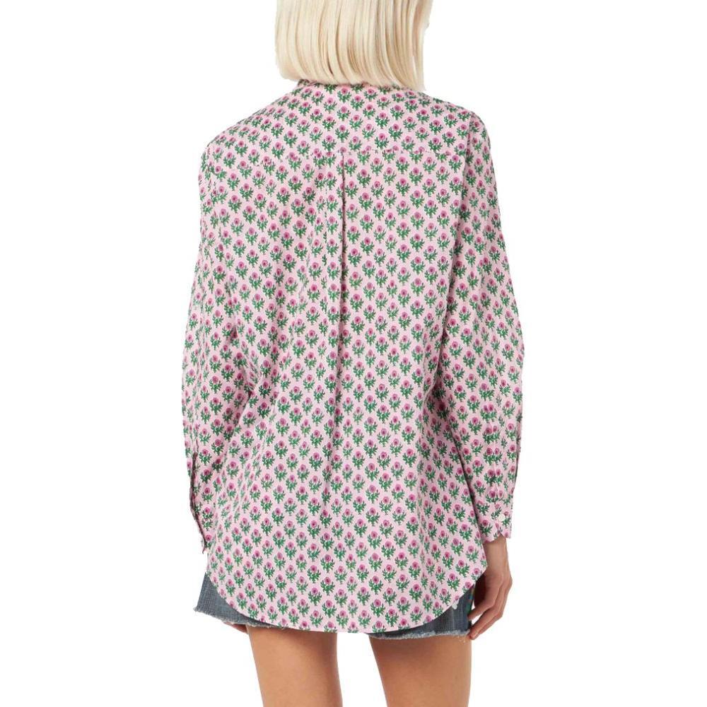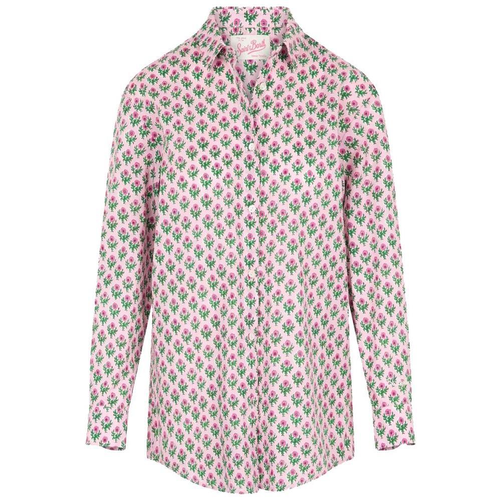MC2 Saint Barth cotton shirt with floral print on pink background, mother-of-pearl button fastening and long sleeves with buttoned cuffs