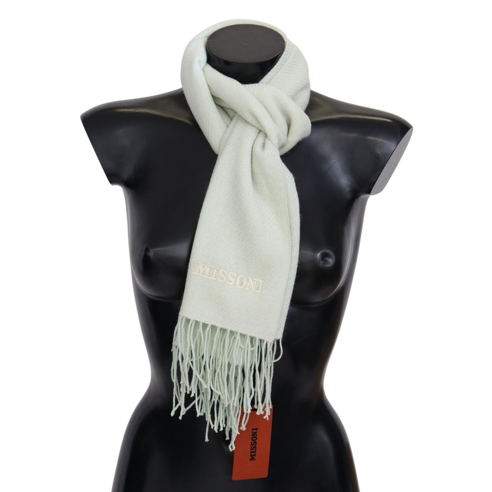 Missoni Light Green Pattern Cashmere Unisex Wrap Fringes Scarf