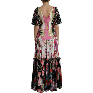 Dolce & Gabbana Multicolor Floral Print Silk Twill Gown Dress