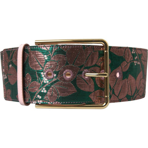 Dolce & Gabbana Multicolor Floral Jacquard Lurex Gold Buckle Belt