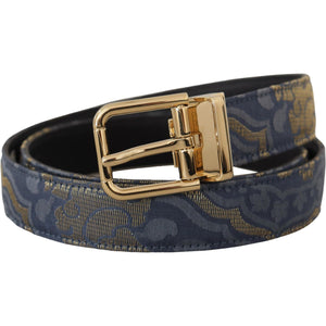 Dolce & Gabbana Navy Blue Jacquard Gold Tone Logo Metal Buckle Belt