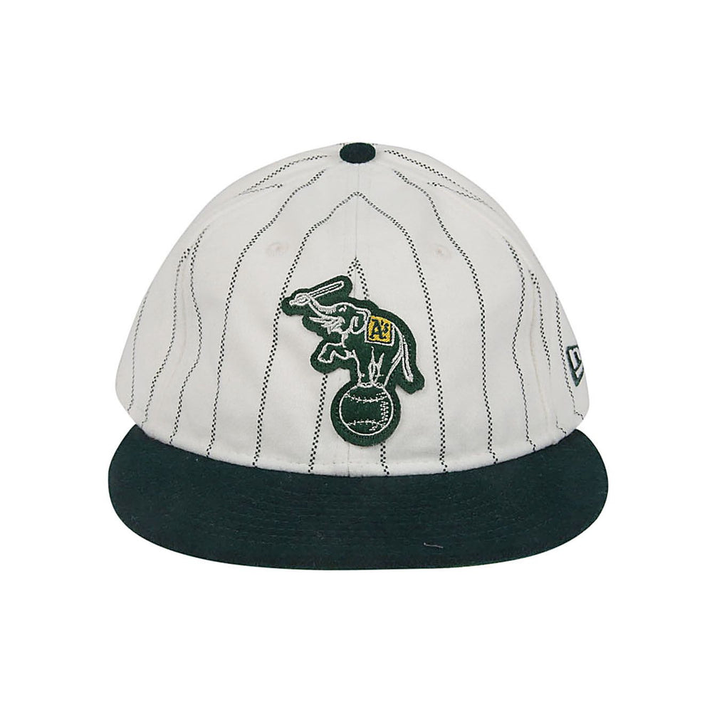 Cappello baseball bianco, con logo sul davanti, laccio dietro regolabile, a righe. 59FIFTY Oakland Athletics cap