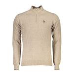 LONG SLEEVED SWEATER, TURTLENECK, HALF ZIP, CONTRAST DETAILS, EMBROIDERY, LOGO, RECYCLED FIBERS
