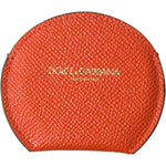 Dolce & Gabbana Orange Calfskin Leather Round Logo Hand Mirror Holder