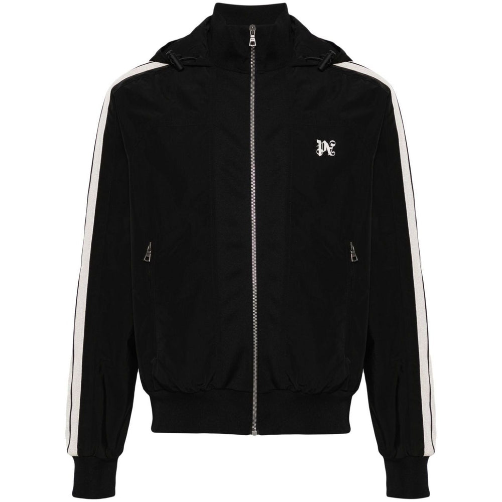 black, ecru shell toggle hood internal high neck embroidered PA monogram at the chest long raglan sleeves with knitted stripes ribbed cuffs two front zip fastening pockets ribbed hem full lining branded zip puller gunmetal-tone hardware authenticity QR code front zip fastening Monogram track jacket Size and Fit - This piece fits true to size. We recommend you get your regular size. Model is 1,84m / 6ft 1in wearing size M