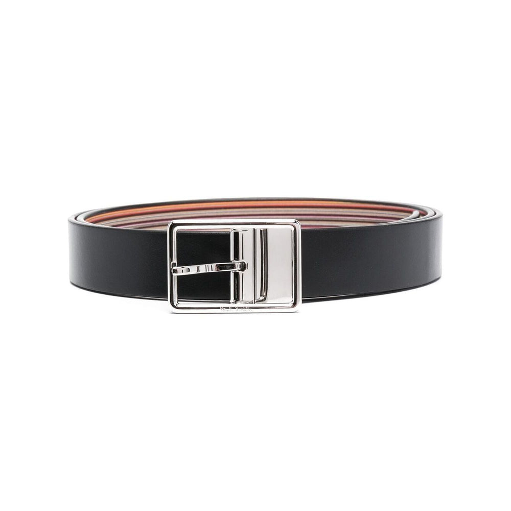 Horizontal striped print, silver-colored details, perforated details and front buckle. Signature Stripe reversbile belt