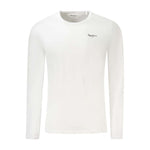 Elevate your wardrobe with the timeless sophistication of Pepe Jeans. This slim-fit, long sleeve t-shirt is the perfect combination of comfort and style. Crafted with a blend of 95% cotton and 5% elastane, it offers a snug yet flexible fit that flatters and moves with you. Featuring a classic crew neck complemented by a striking print and iconic Pepe Jeans logo, this piece exudes effortless cool. Its crisp white hue makes it a versatile addition to any fashion-forward ensemble. Embrace sustainable fashion without compromising on style.