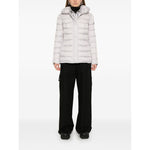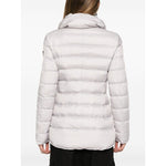 light grey goose down padded design quilted front press-stud and zip fastening high neck long sleeves logo patch at the sleeve two side inset pockets full lining straight hem Flagstaff down jacket Size and Fit - This piece fits true to size. We recommend you get your regular size. Model is 1,75m / 5ft 8in wearing size 40 (IT)