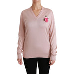 Dolce & Gabbana Pink Floral Embellished Pullover Silk Sweater