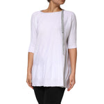 PINK MEMORIES White Cotton Short Sleeves Round Neck Blouse Top