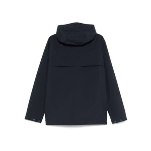 navy blue front press-stud fastening concealed front zip fastening two side zip-fastening pockets embroidered logo at the chest Hooded jacket Size and Fit - Width 10,83 in / 27,5 cm