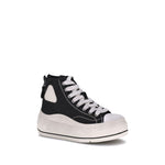 R13’s High Top Sneakers combine a bold design with a distinctive streetwear touch. The high-leg model with platform adds an element of height and style, while the round toe offers comfort and practicality. The brand logo, embossed on an outer side panel, underscores R13’s identity. The lace-up front and zippered heel closure ensure a secure fit. The worn-effect sole gives a worn-in, grunge look, perfect for those looking for sneakers with a unique, contemporary style.