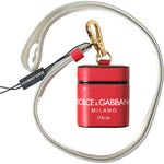 Dolce & Gabbana Red Leather Gold Tone Metal Logo Print Airpods Case