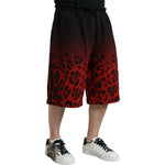 Dolce & Gabbana Red Leopard Print Cotton Bermuda Shorts