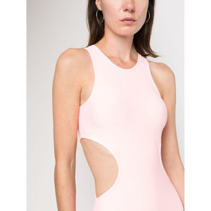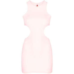 cut-out sleeveless minidress from REINA OLGA featuring blush pink, stretch-design, cut-out detailing, round neck, thin shoulder straps, sleeveless, racerback and thigh-length. Cut-out detail short dress Size and Fit - This piece fits true to size. We recommend you get your regular size. Model is 1,75m / 5ft 8in wearing size 1 (NUM)