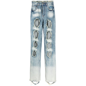distressed-effect straight-leg jeans from RUI featuring light blue, cotton, washed denim, frayed brim, cut-out detailing, high waist, classic five pockets and front button fastening. Cut-out detail denim jeans Size and Fit - This piece fits true to size. We recommend you get your regular size. Model is 1,75m / 5ft 8in wearing size S