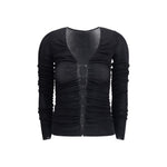 Self-Portrait’s knit Top is an elegant and sensual piece featuring a deep V-neck at the front with hook-and-eye closure. Drapes at the sides and on the sleeves give movement and femininity to the design, making it perfect for sophisticated and refined looks.