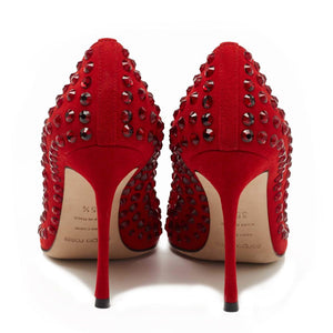 Sergio Rossi suede calfskin décolleté with ruby-colored rhinestones applied on the entire surface