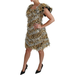 Dolce & Gabbana Silver Gold Sheath Mini Shift Gown Dress