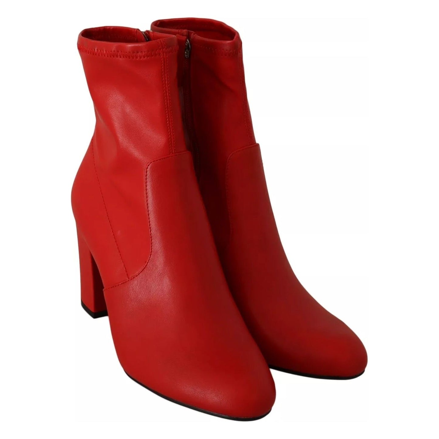 Steve Madden Red Leather Block Heels Ankle Boots Shoes