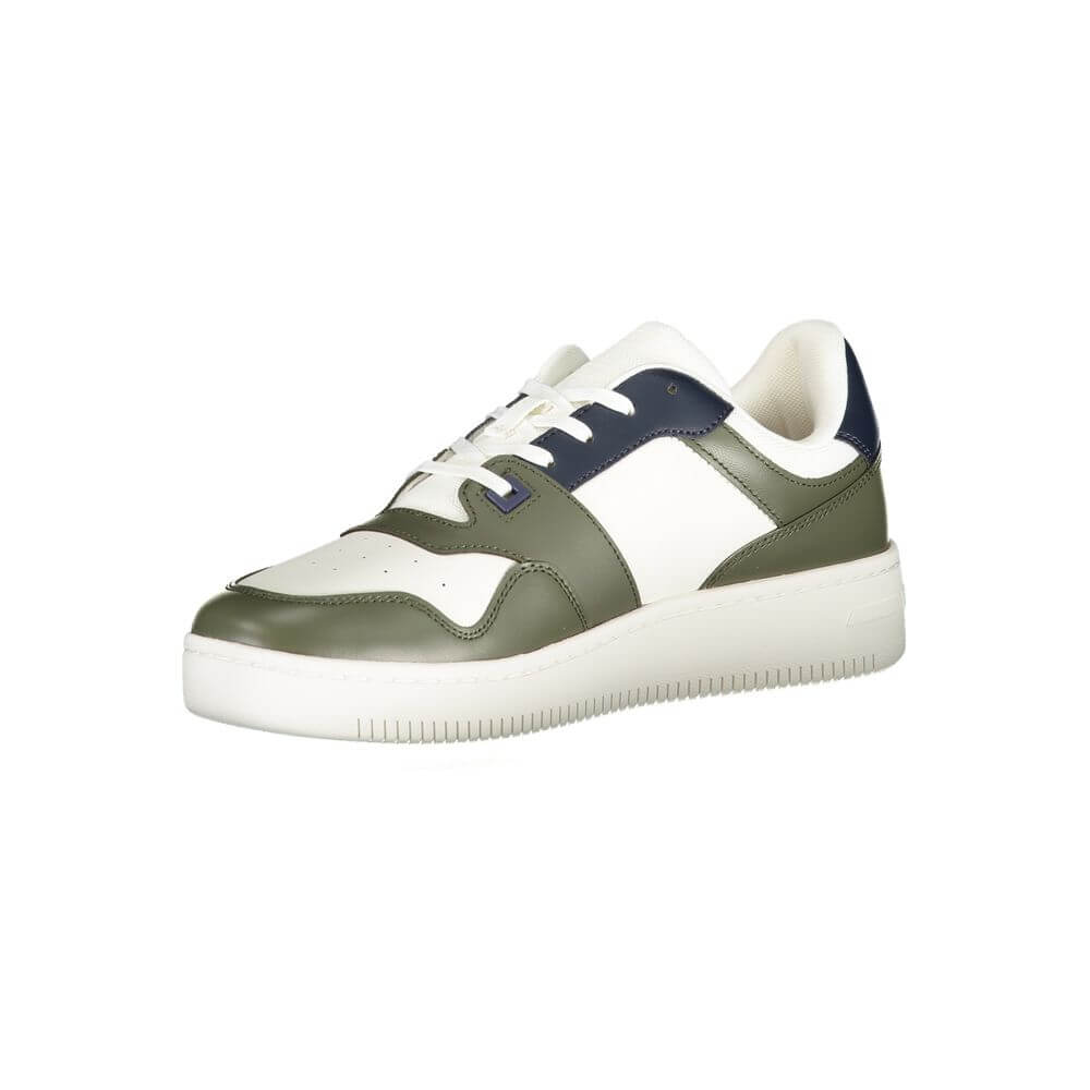 Elevate your sneaker game with the latest from Tommy Hilfiger. These sporty kicks come alive with contrasting blue and white hues, accented by the iconic logo for an unmistakable statement. Crafted from a durable blend of polyester, leather, and polyethylene, these shoes promise comfort and longevity while keeping you on-trend. Perfect for the stylish gentleman ready to make an impression every step of the way.
