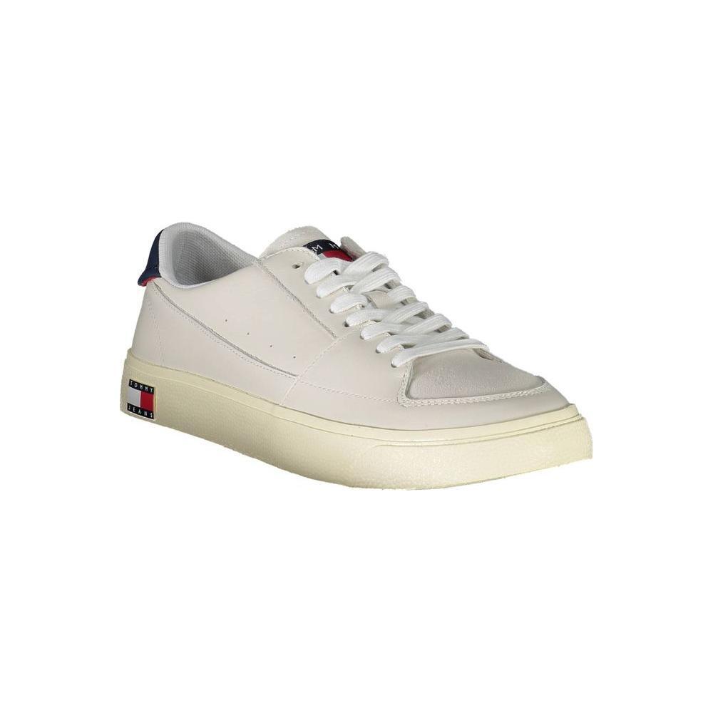 Elevate your sneaker game with the unmistakable style of Tommy Hilfiger. These sports shoes boast a savvy blend of texture and hue, featuring a crisp white leather base accented with striking details, exuding both elegance and athleticism. The contrasting sole adds a dynamic edge, while the iconic logo proudly declares your fashion-forward choice. Responsibly crafted with a 50% recycled polyester blend, stride into a greener future with uncompromised style and comfort.