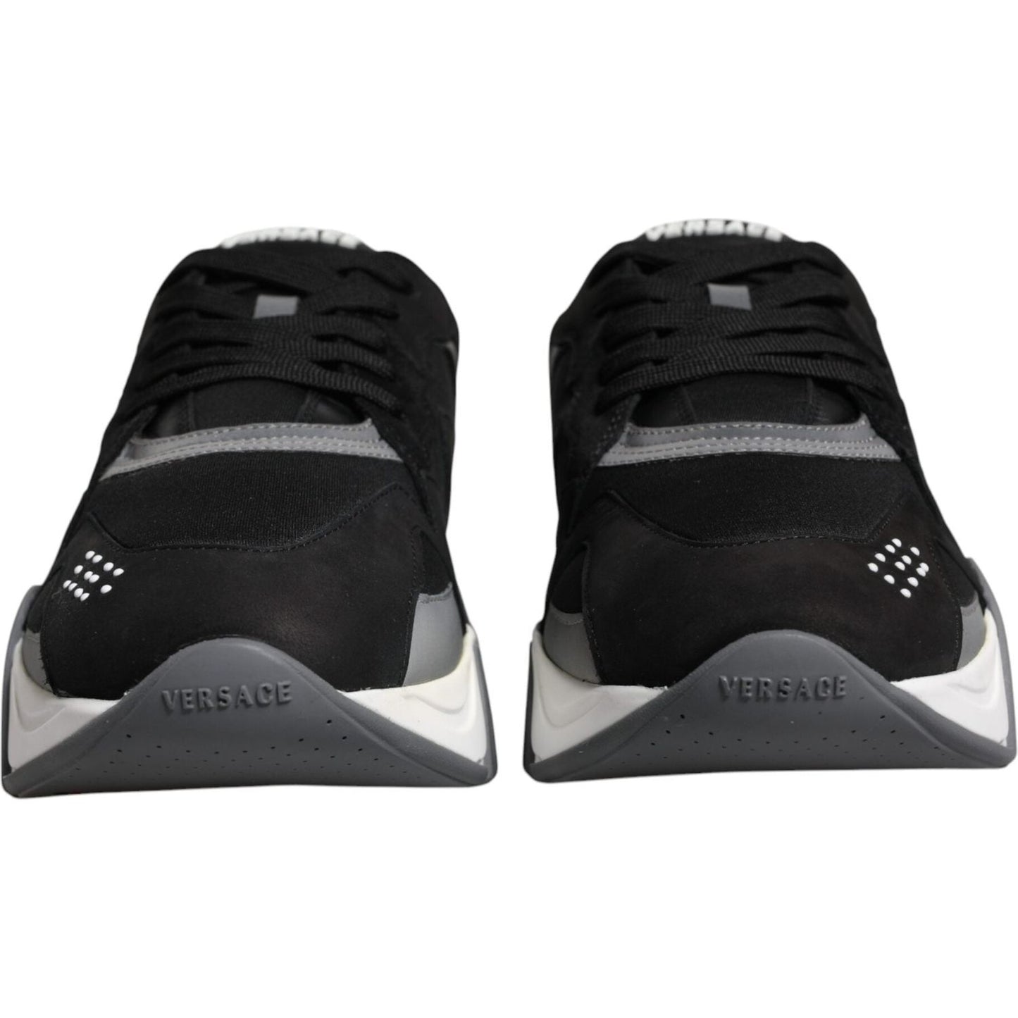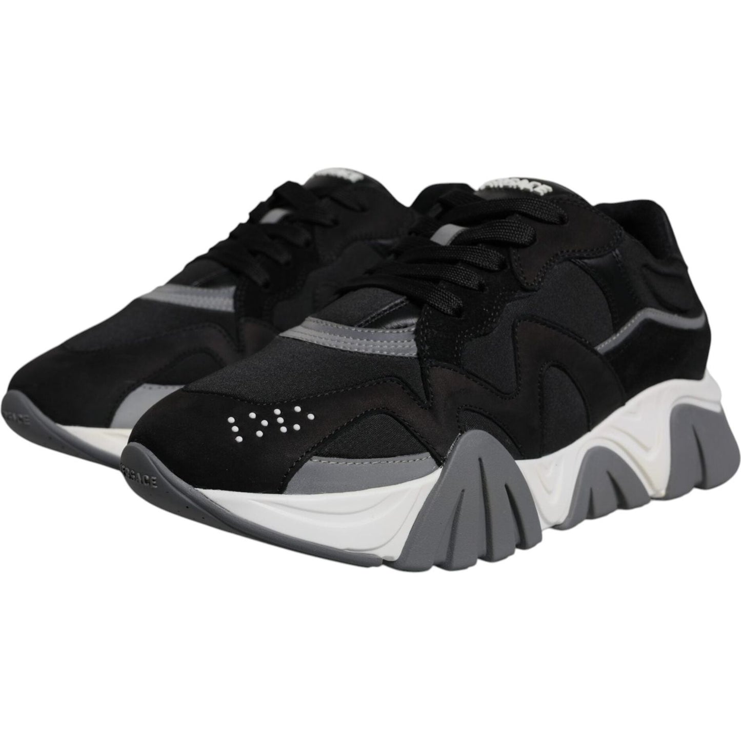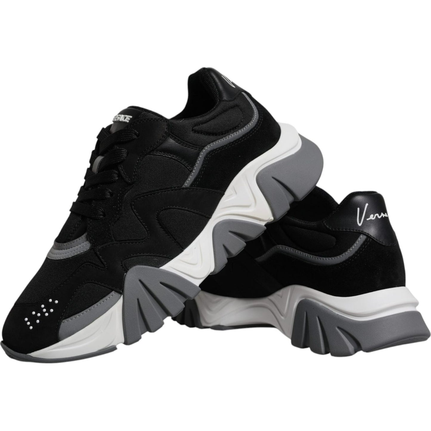 Versace Black Leather Neoprene Chunky Low Top Sneakers Squalo Shoes