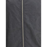 Waterproof Jacket by Versace with a functional and sophisticated design. The design features an adjustable drawstring hood, front zipper closure and two side welt pockets. Elasticized cuffs and an adjustable drawstring hem ensure a comfortable and protective fit. Complemented by the iconic tone-on-tone baroque weave, this jacket combines unmistakable style and practicality to tackle rainy days with elegance.