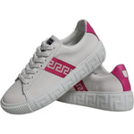 Versace White Pink Greca Print Platform Low Top Sneakers Shoes