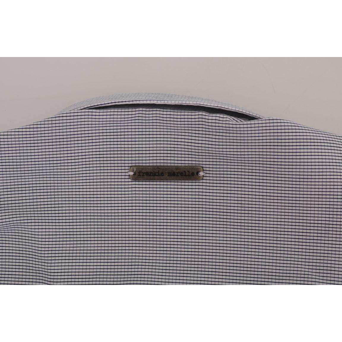 Frankie Morello White Blue Check Casual Cotton Regular Fit Shirt
