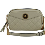 Equipped with a zip closure, iconic Medusa head logo, and a tastefully arranged interior featuring a main compartment with slip pocket, alongside an external slip compartment, this bag keeps your essentials organized and accessible. The exquisite gold-tone hardware, paired with the adjustable chain and leather shoulder strap, allows versatile styling options for shoulder or crossbody wear.